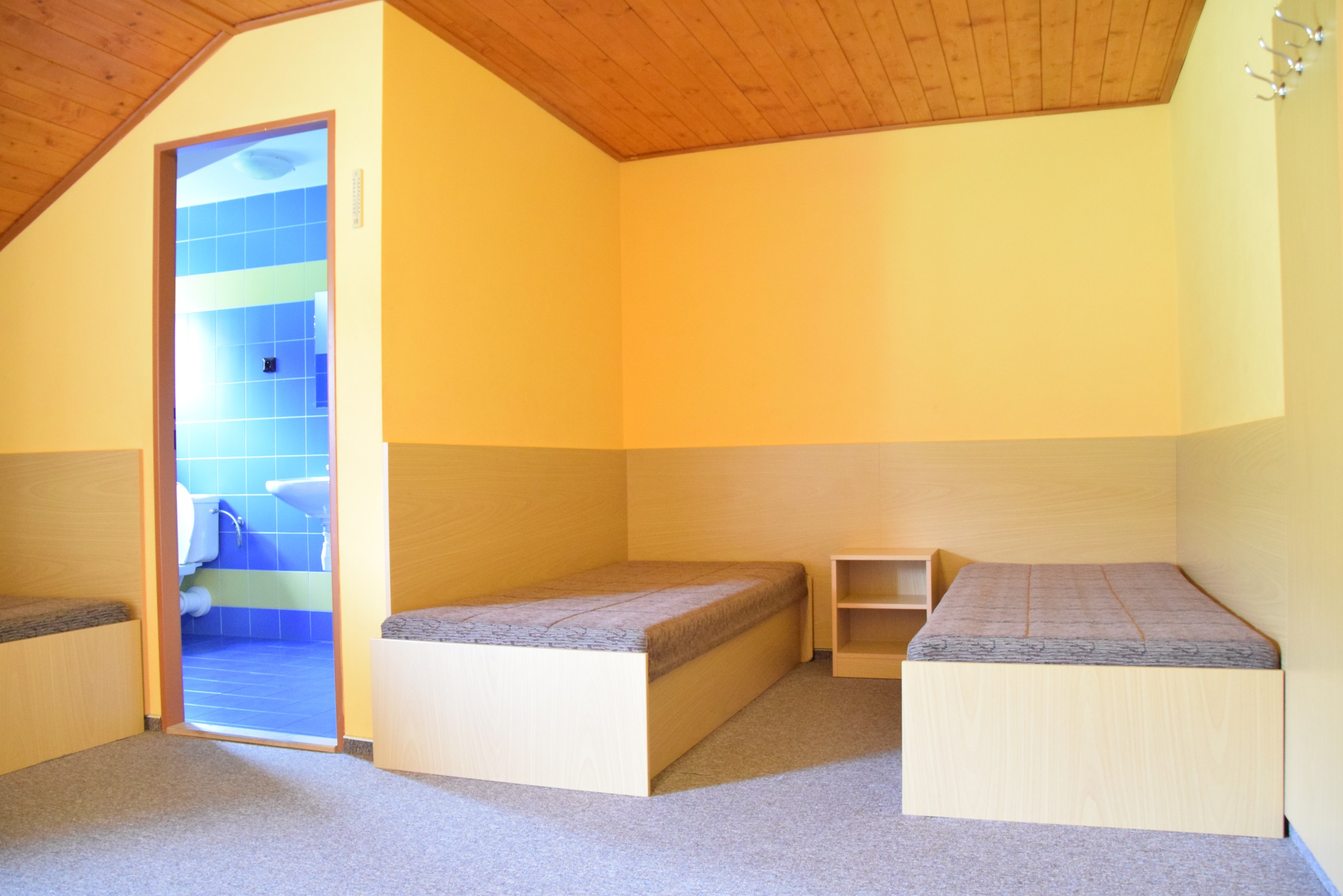 Nabízíme ubytování v celkem 7 pokojích - 4 pokoje po 4 lůžkách a 3 pokoje po 3 lůžkách. Každý pokoj má vlasní sociální zázemí, WC a sprchový kout. Areál je vhodný jak pro soustředění, tak pro jednotlivé sportovce, jiní klienti jsou též velmi vítáni. Všichni hosté mají možnost využít výřivku pro 3 osoby a infra saunu pro 6 osob. Součástí vybavení je i masážní lůžko a posilovací stroj. K dispozici je i klubovna, ve které je kromě posezení a baru s točeným pivem možnost využití malé kuchyňky.